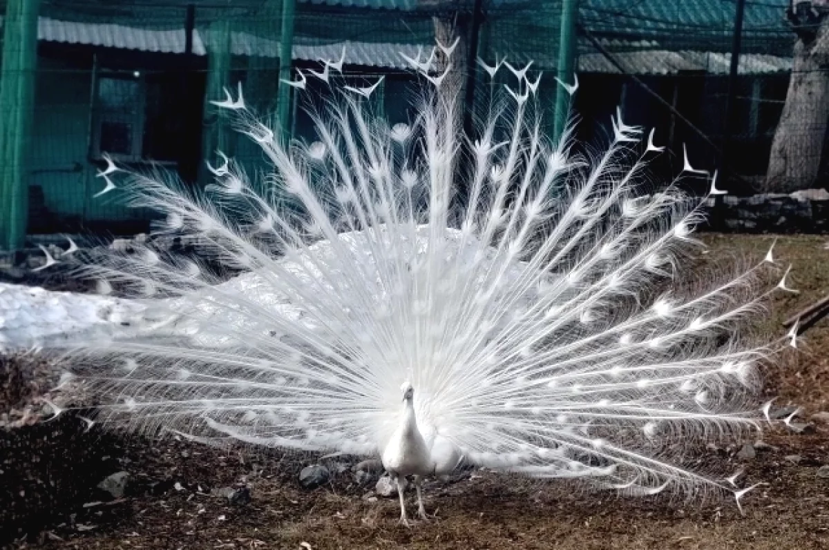 В Большереченском зоопарке поделились роскошными кадрами из павлиньего царства. На видео белоснежный самец расхаживает по вольеру, расправляет свой роскошный «веер» и кружится, словно главный модник на подиуме.