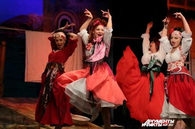 Спектакль на сцене театра им. Ермолаевой и задуман был, и получился солнечным, взрывным и энергичным. Этому способствовала хореография Надежды Московец, которая часто работает в паре с Ольгой Красковой, и музыкальная составляющая (композитором выступила сама режиссёр).