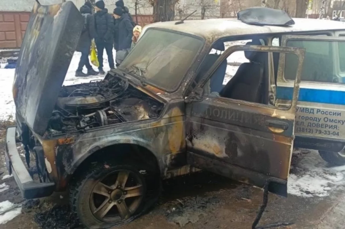 В Омске возбуждено уголовное дело после поджога служебного автомобиля участкового. 27-летний житель города облил машину бензином и поджег ее на улице Комкова, после чего скрылся с места преступления.