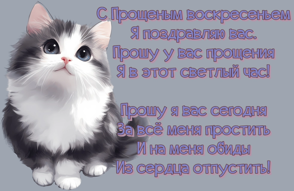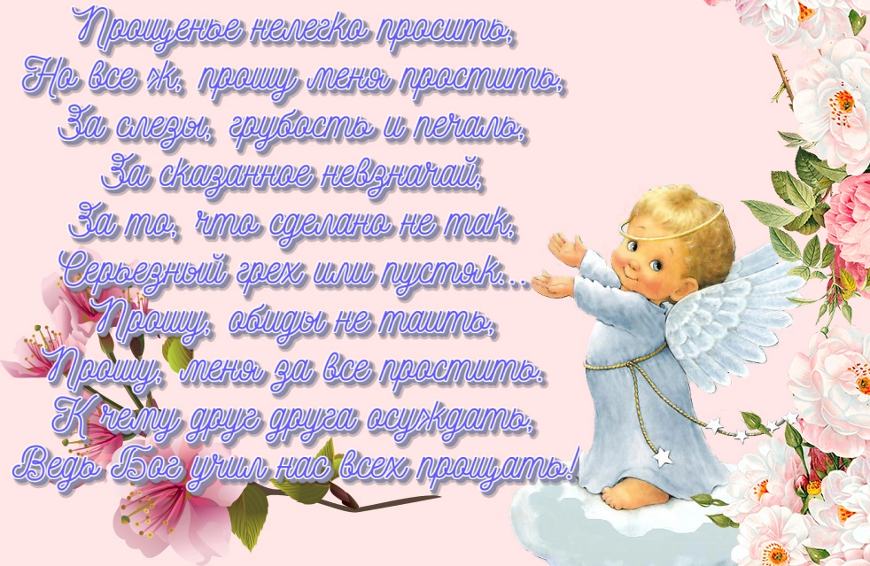 Неважно, ищете ли вы трогательное стихотворение, просто красивую картинку или изображение с традиционной формулировкой «Прости меня». В нашей подборке каждый найдет что-то свое. Скачивайте понравившиеся открытки и поздравляйте близких, ведь в этот день так важно услышать в ответ заветное: «Бог простит, и я прощаю!»