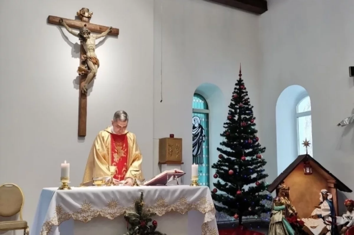 «Дети обыгрывают историю, которая произошла около 2000 лет назад... После сценки начинается святая месса. На ней есть момент, когда мы берём фигурку младенца Иисуса и несём её в ясли, в вертеп», — делится настоятель католического прихода.