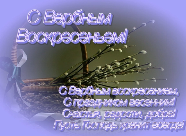 - «От всей души поздравляю с Вербным воскресеньем! Желаю светлой радости, искренней любви и благодатной жизни! Пусть освящённая верба украсит дом, а благословение Господне подарит крепкое здоровье вам и вашей семье!»