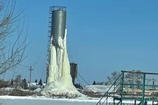 Прокуратура потребовала срочно устранить аварию на водонапорной башне в Крутинском районе, из-за которой ледяной массив навис над лицеем и стадионом.