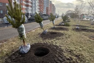 В Омске высадили более 100 хвойных деревьев на улицах города